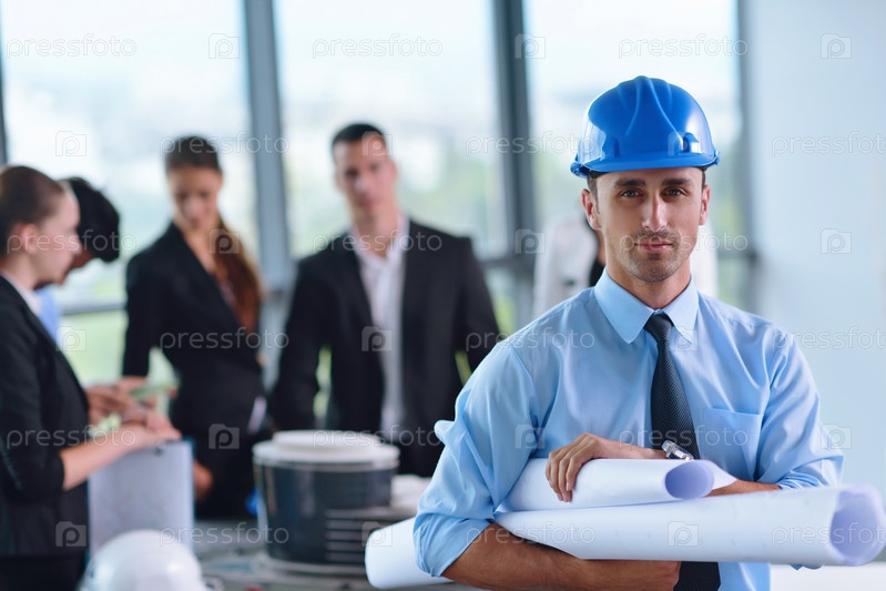 Деловые люди и инженеры на совещании