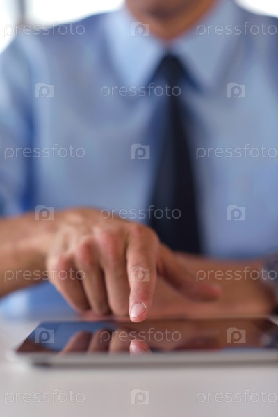Деловой человек использует планшетный компьютер в офисе