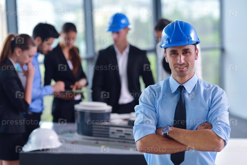 Деловые люди и инженеры на совещании