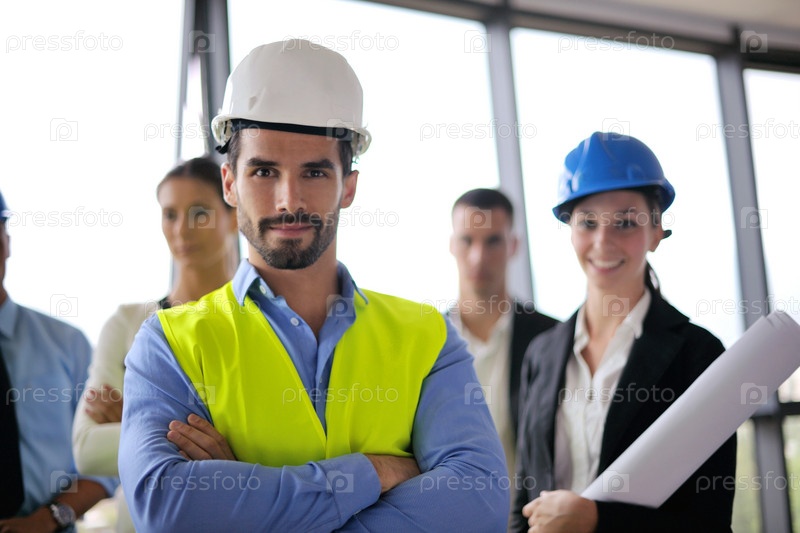 Деловые люди и инженеры на совещании