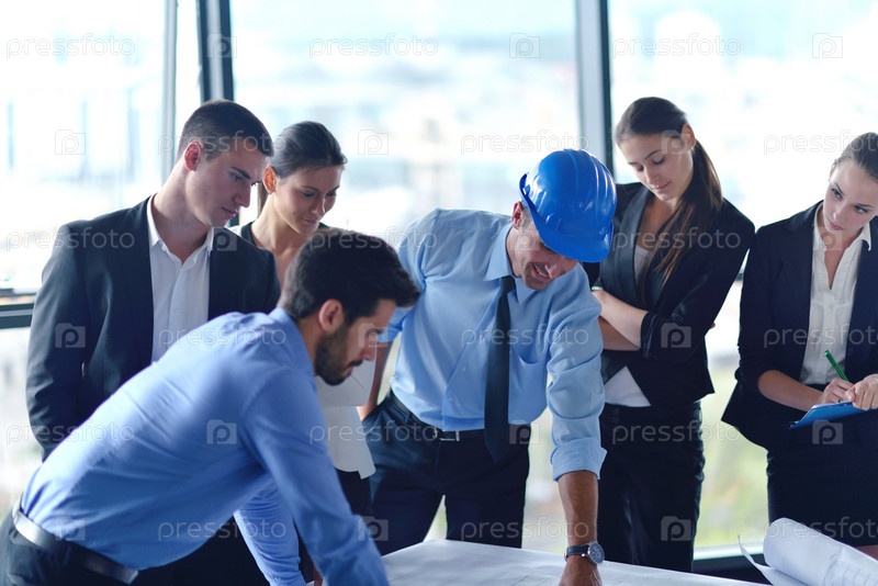 Деловые люди и инженеры на совещании