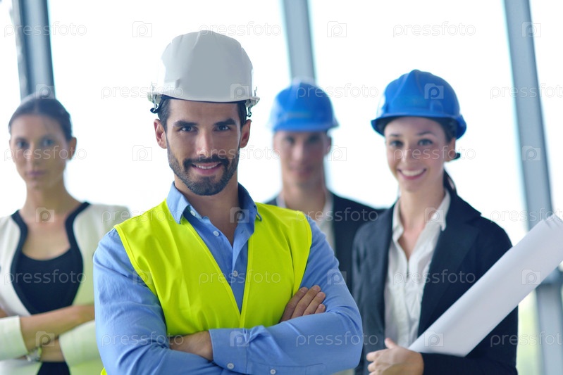 Деловые люди и инженеры на совещании