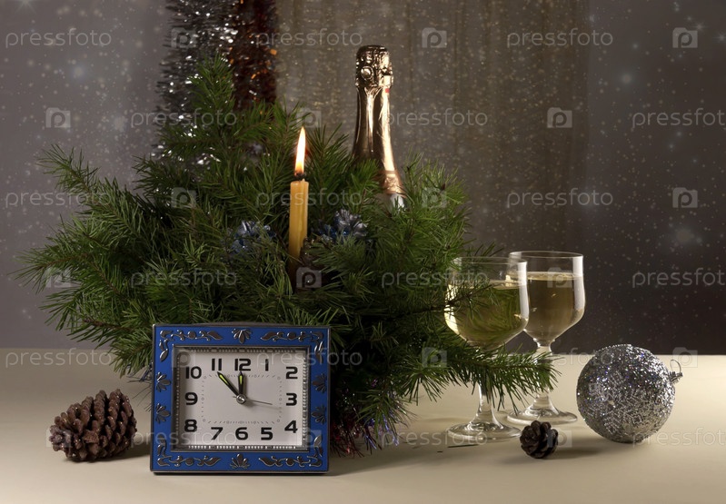 Новогодняя композиция с бокалами и свечкой