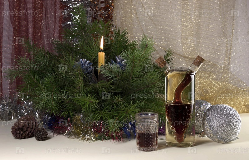 Новогодняя композиция с вином и свечкой