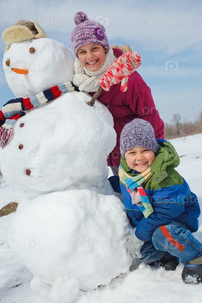 Дети делают снеговика
