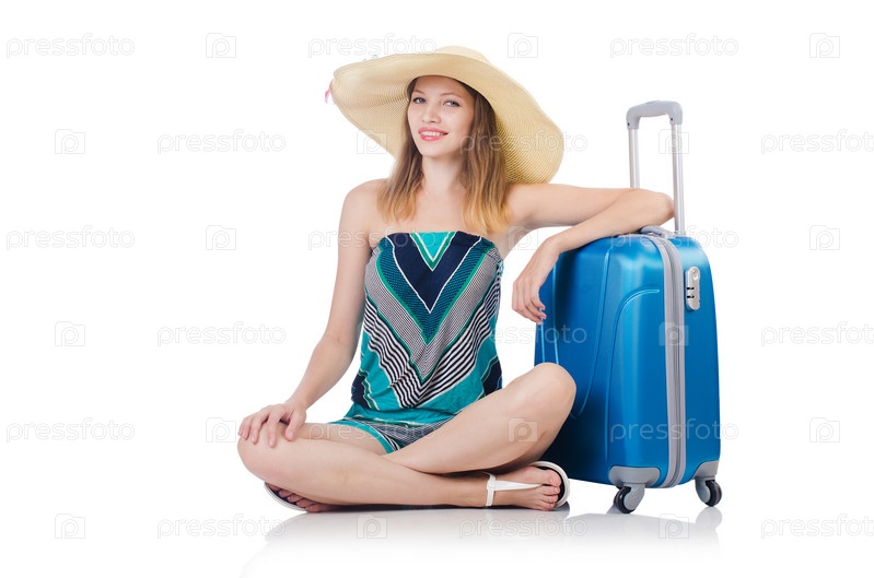 Женщина с багажом на белом фоне