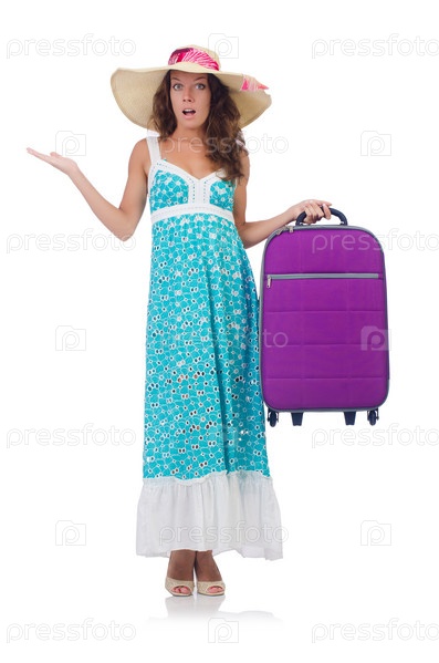Женщина собирается на летние каникулы, изолированная на белом фоне