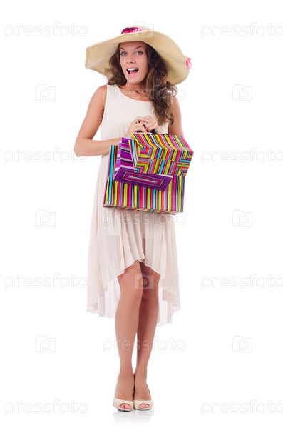 Женщина с покупками на белом фоне