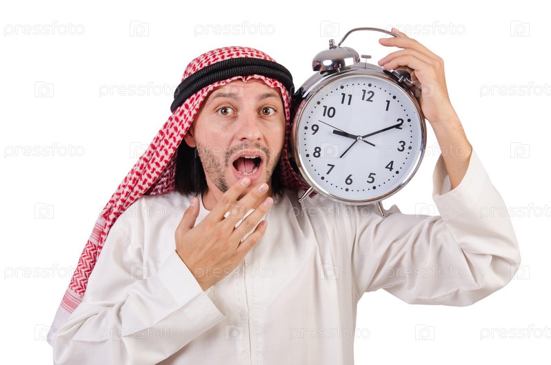 Араб в концепции времени на белом фоне