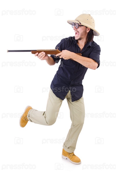 Смешной охотник в шляпе сафари