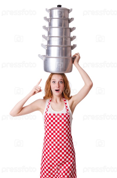 Молодая женщина повар, изолированная на белом