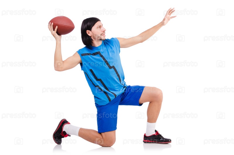 Молодой американский футболист на белом фоне