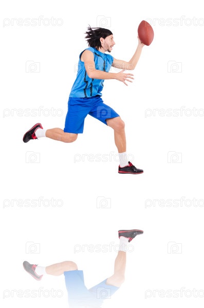 Молодой американский футболист на белом фоне