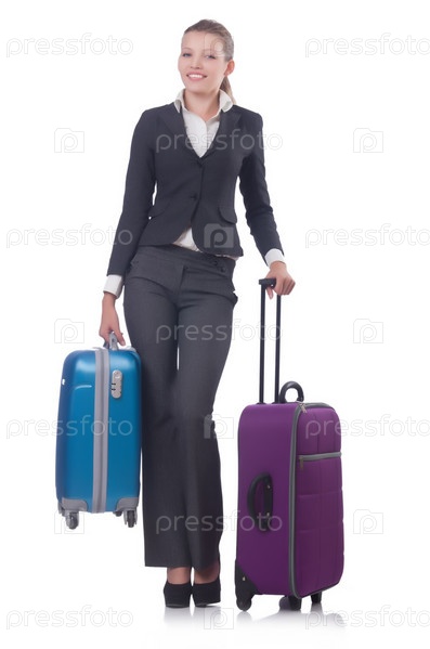 Женщина с багажом на белом фоне