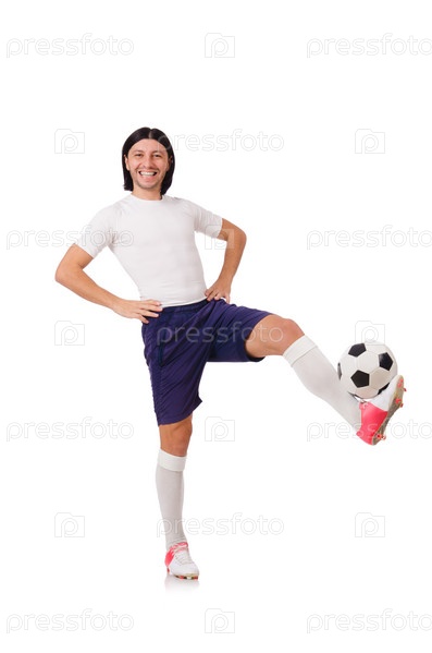 Молодой футболист на белом фоне