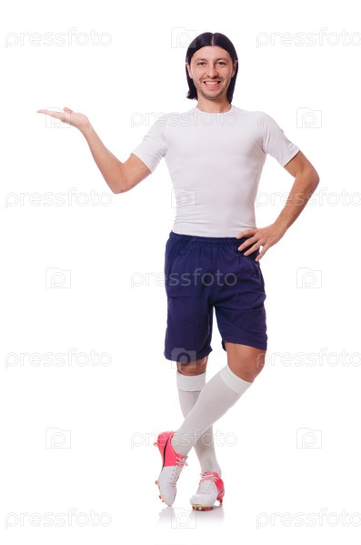Молодой футболист на белом фоне