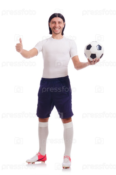 Молодой футболист на белом фоне