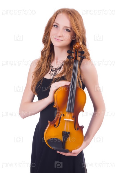 Женщина со скрипкой, изолированная на белом фоне