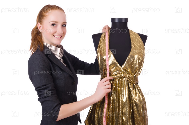 Молодой портной, изолированный на белом фоне