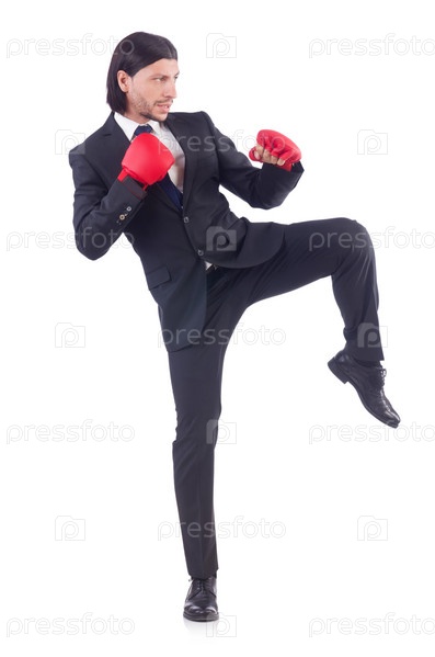 Бизнесмен с боксерские перчатками на белом фоне