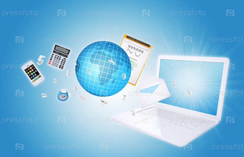 Ноутбук и офисные принадлежности