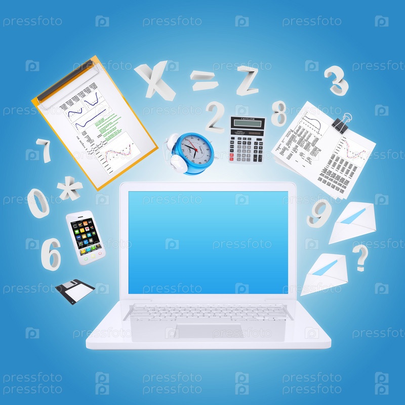 Ноутбук и офисные принадлежности