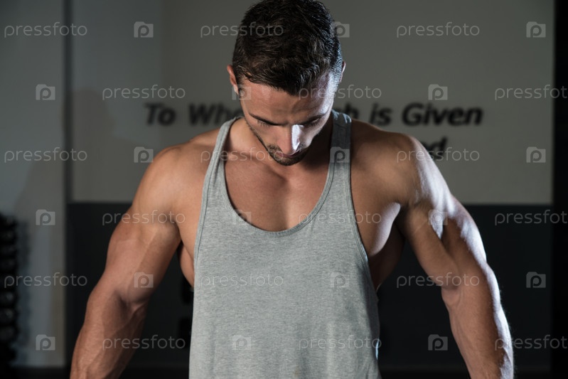Культурист делает упражнения для плеч