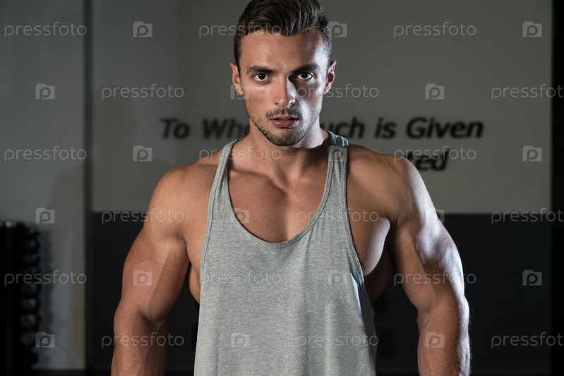 Культурист делает упражнения для плеч