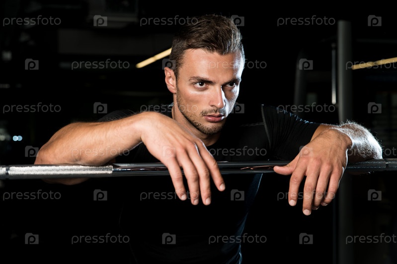 Молодой мускулистый мужчина отдыхает в тренажерном зале