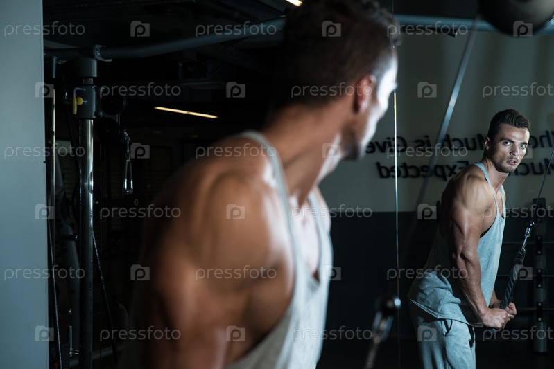 Культурист делает упражнения для плеч