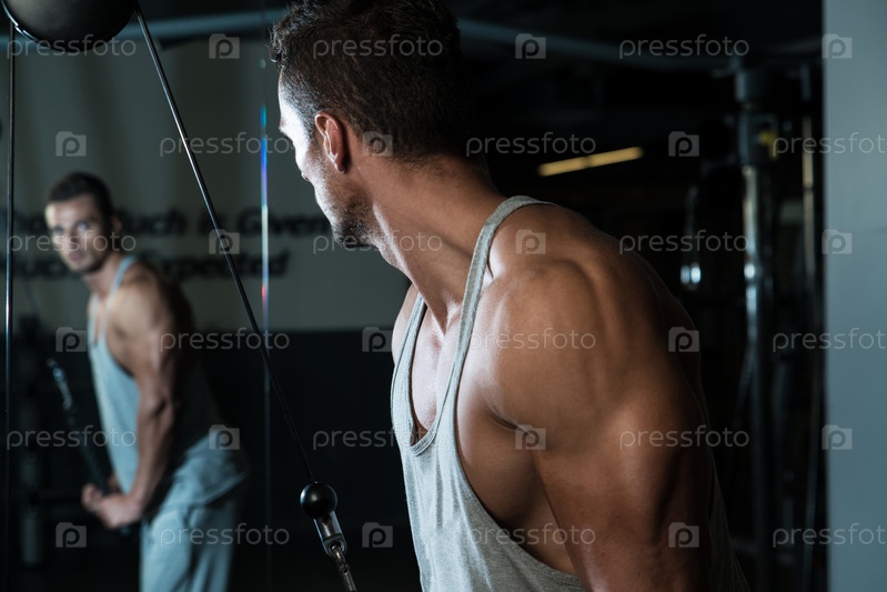Культурист делает упражнения для плеч