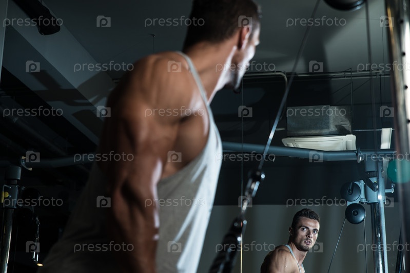 Культурист делает упражнения для плеч