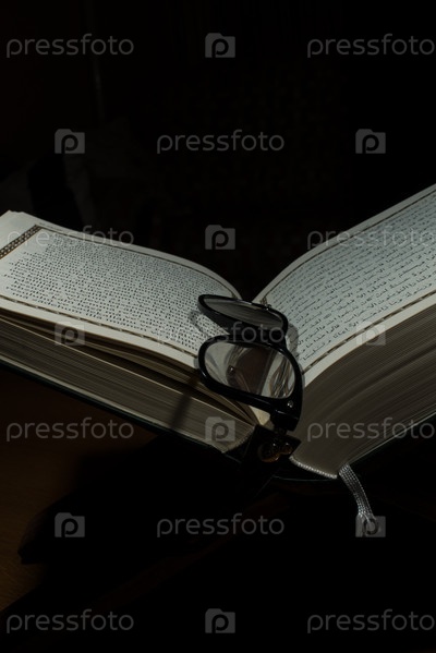 Открытый священный Коран и очки