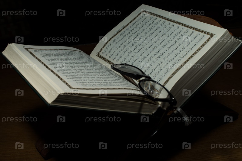 Открытый священный Коран и очки