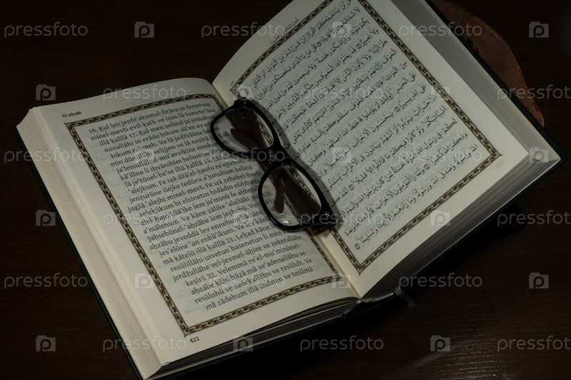 Открытый священный Коран и очки