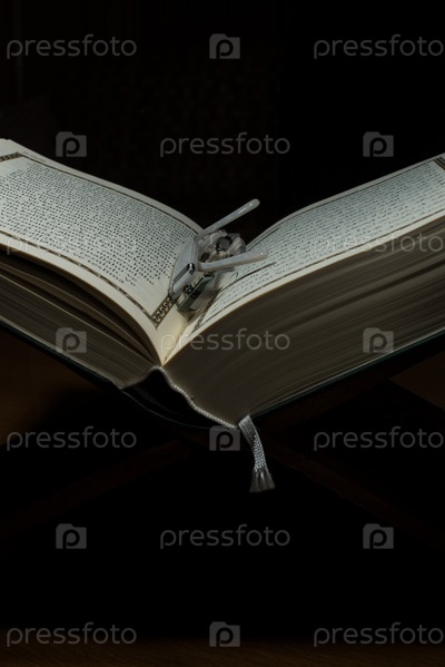 Открытый священный Коран и очки