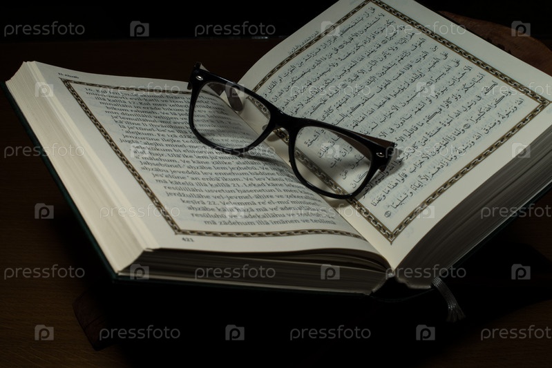 Открытый священный Коран и очки