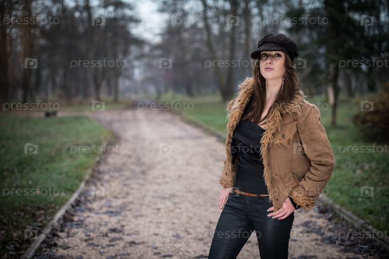 Молодая женщина позирует в лесу