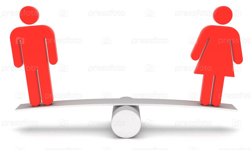 Иллюстрация с мужчиной и женщиной, стоящими на весах