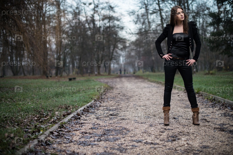 Молодая женщина позирует в лесу