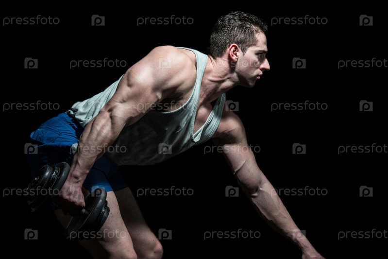 Молодой культурист делает упражнения для спины