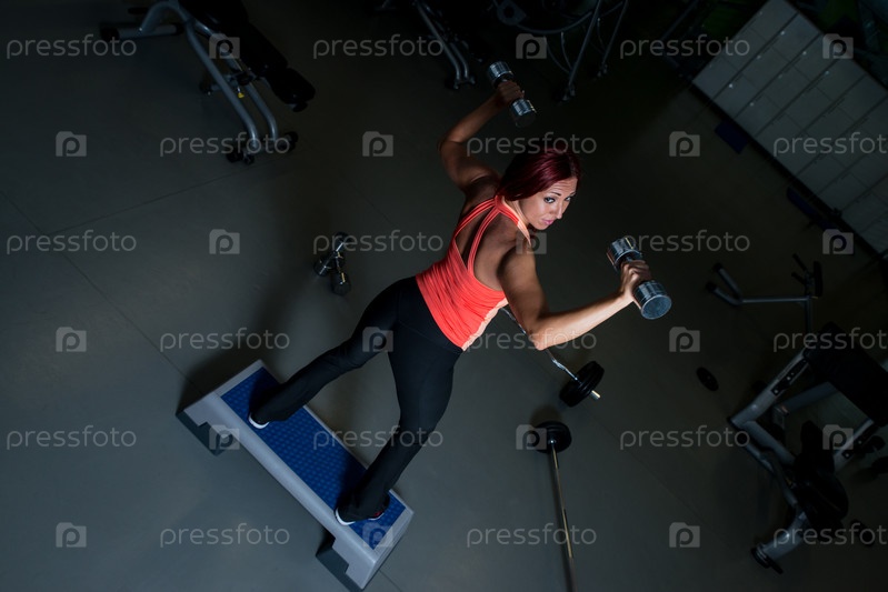 Женщина с гантелями