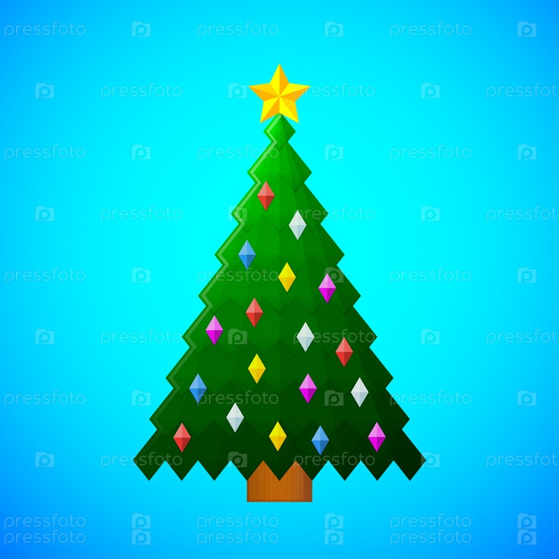 Зеленая елка с украшениями на синем фоне