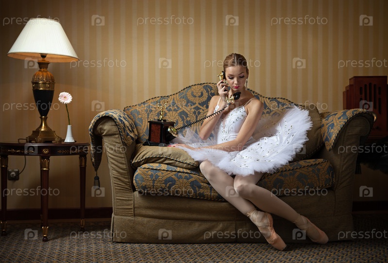 Профессиональная балерина разговаривает по телефону