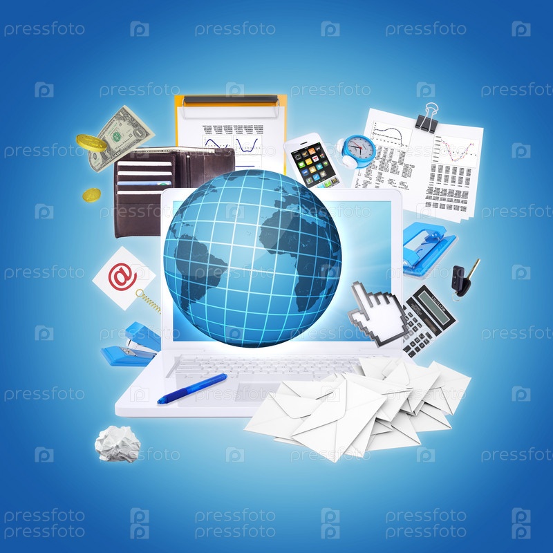Ноутбук и офисные принадлежности