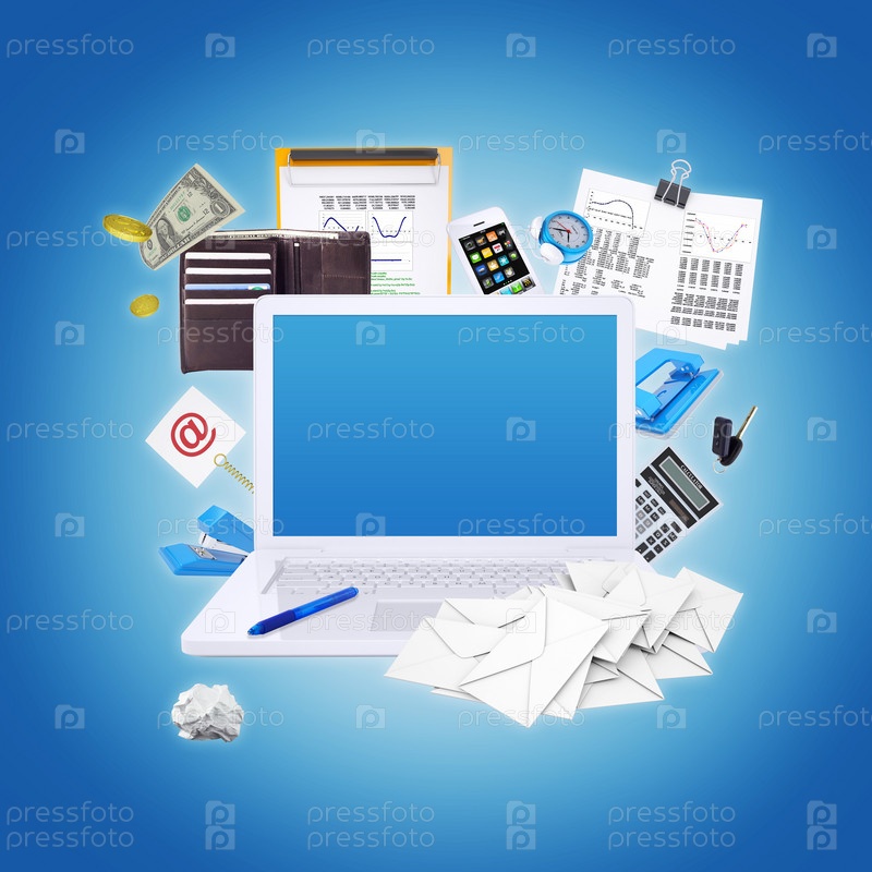 Ноутбук и офисные принадлежности