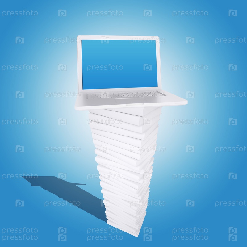 Ноутбук на стопке белых книг