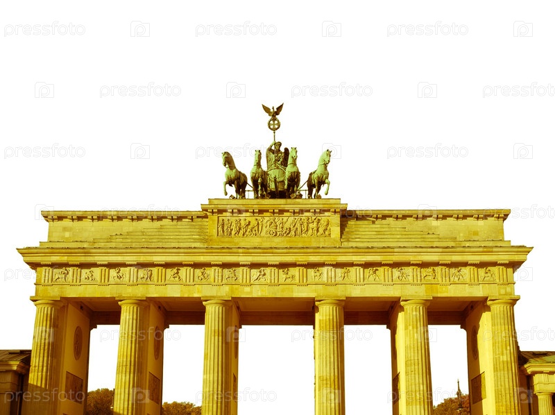 Бранденбургские ворота, знаменитая достопримечательность в Берлине, Германия - изолированные на белом фоне