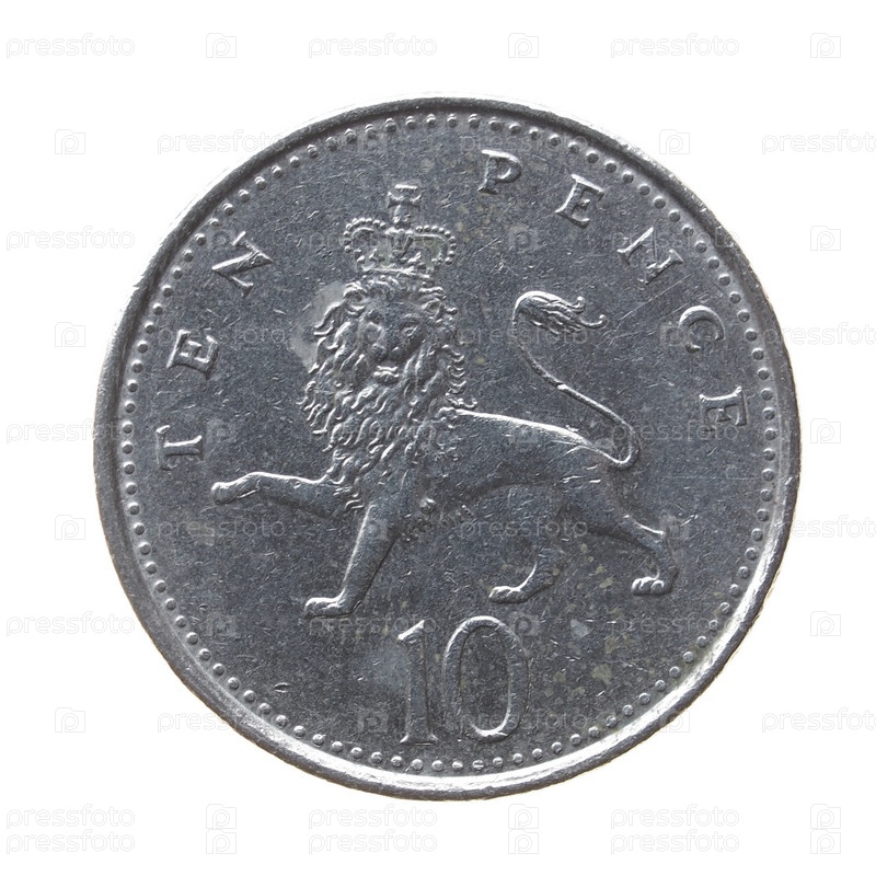 Десять пенсов, изолированные на белом фоне