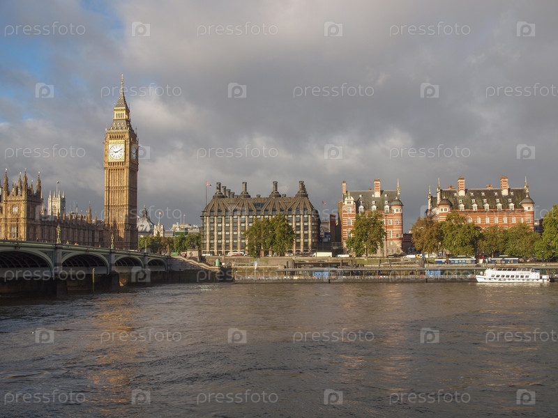 Вестминстерский мост, здание парламента и Биг-Бен в Лондоне, Великобритания